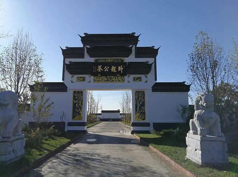 在卧龙公墓内,可以欣赏到美丽的自然景色和独特的建筑风格。整个公墓被绿色草坪和清澈的人工湖所环绕,淡雅的青砖白墙、栩栩如生的雕像等特色建筑元素齐聚其中,营造出如诗如画的氛围。