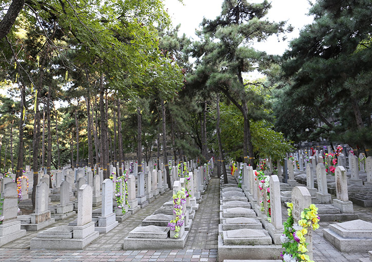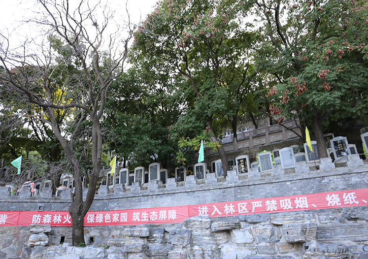 金山陵园坐落于燕京八景“西山睛雪”、“香山红叶”风景区内,与北京著名寺院“碧云寺”、“卧佛寺” 比邻。陵园依山而建,取西山之自然景观,背依苍松翠柏,俯视昆明湖水,近看“玉泉趵突”,远眺北京全貌。墓区 高雅肃穆,四季常青。墓碑种类繁多,雕刻精美,称之北京碑刻博物馆。金山陵园地处名胜,堪称“叶落归根”之雅地。